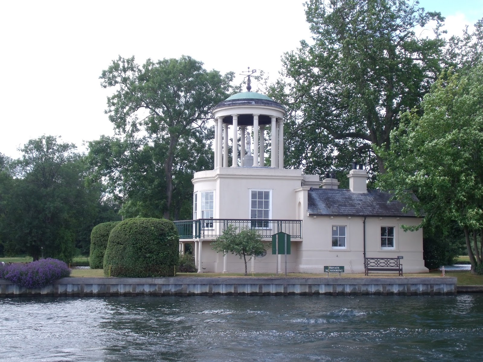 This small temple is on an island and denotes the end of the long regatta reach from Henley. It is actually a fishing lodge with a cupola on the top and a sculpture of a naked lady looking towards Henley.
